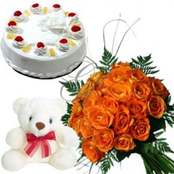Orange roses cake N teddy