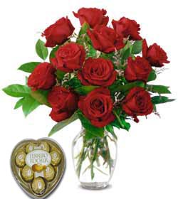 1 Dozen + Ferrero Heart1 Dozen Rose Vase With Ferrero Heart |