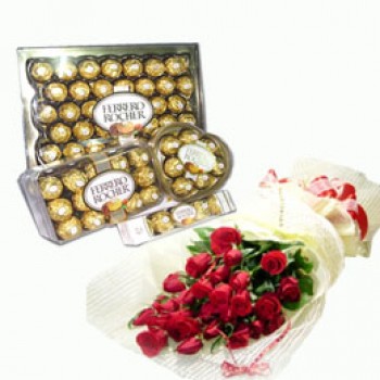 Big loveA Ferrero Rocher Set(46 pcs, 30pcs, 5 pcs & Heart-Shape with 1 dozen Red Roses ) |