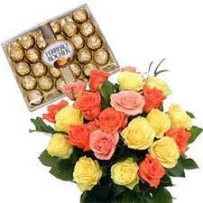 Bunch of 12 Mix Roses with 24 Pcs Ferrero RochersBunch of 12 Mix Roses with 24 Pcs Ferrero Rochers Chocolate Box Pack. |