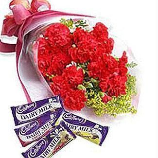 Carnations Bouquet With Cadbury Chocolates10 Carnations Bouquet With 5* 165 Cadbury Chocolates |