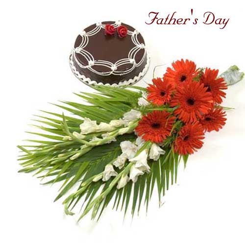A Perfect PoetryBunch of vibrant orange gerberas and mix flower with chocolate cake. |