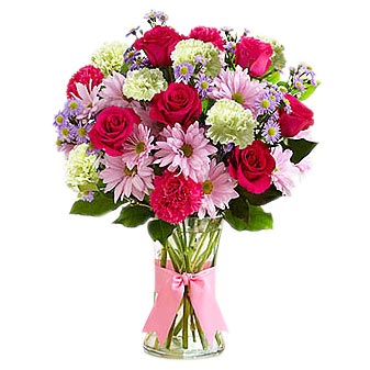 Sweet SeductionGive a sweet seduction to your loved one with this arrangement of roses, gerberras and carnations. Combining a passionate mix of red and purple flowers, this bouquet will be an irresistable temptation for anyone. Bouquet Of Red Roses, Gerberas, And Mixed Flowers |