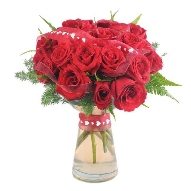 PRIMARY SIGNIFICANCEExquisite floral arrangement in a original vase with vibrant 24 red roses. The Red Rose not only carries more meaning than many other color roses, it is also one of the most universal of all symbols. Something so vibrant is meant to be shared with the loveliest being. |